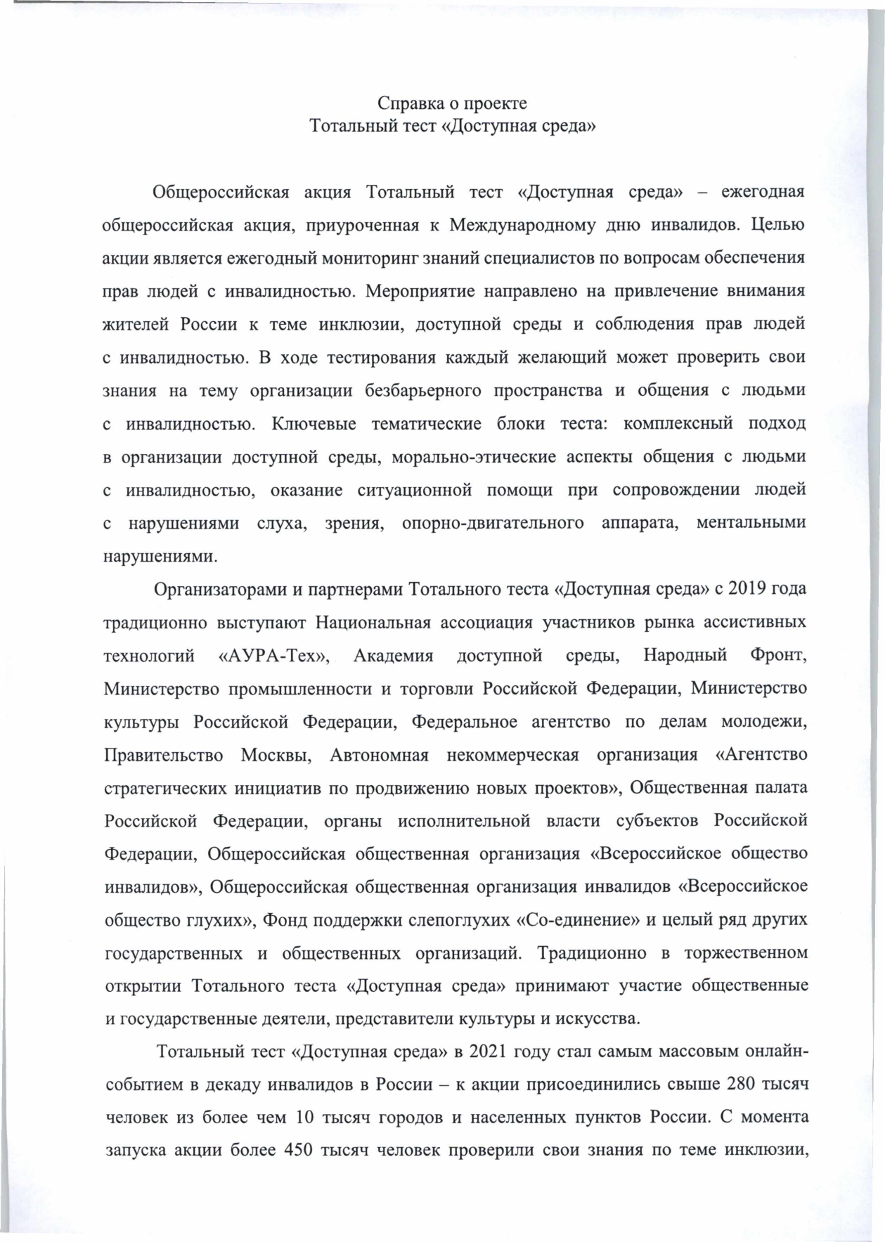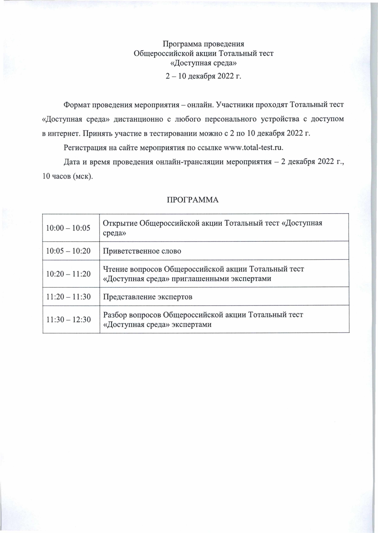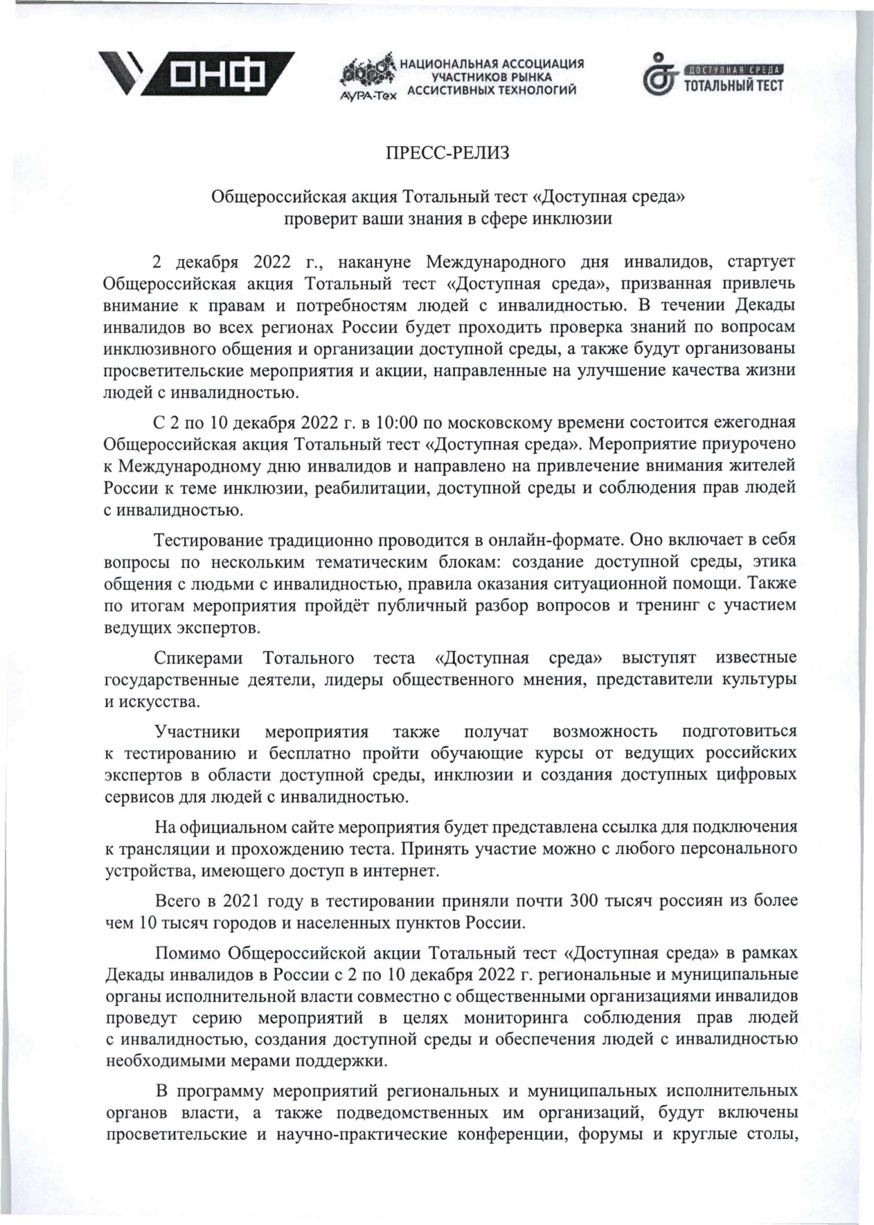 С 2 по 10 декабря 2022г состоится крупнейшая акция в сфере инклюзиции,приуроченная к Международному дню инвалидов-общероссийская акция тотальный тест "Доступная среда". Пройти тестирование можно будет по ссылке www.total-test.ru