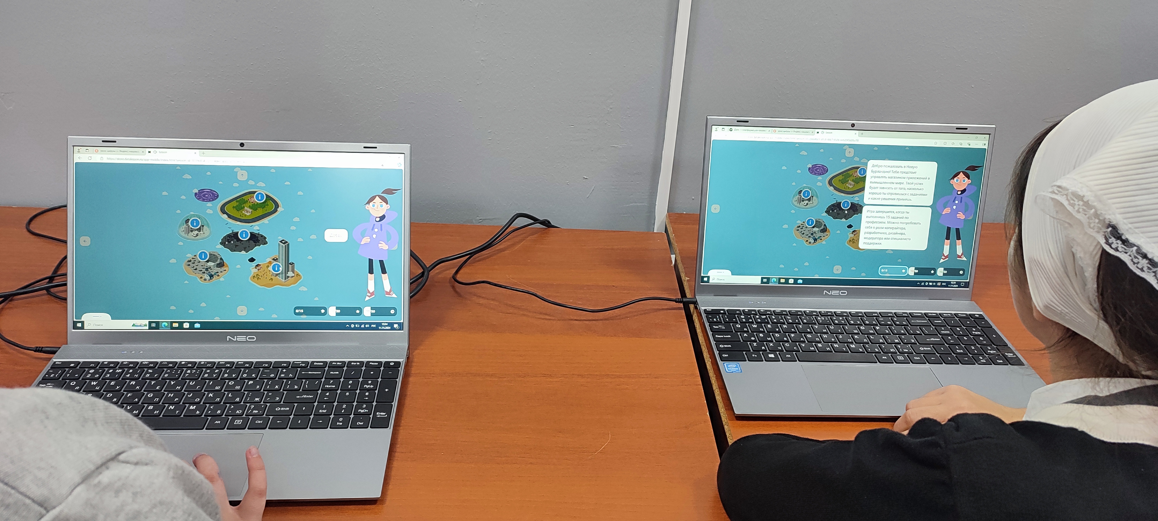 Уроки прошли в формате игры, где ученики выступили в роли владельцев магазина приложений и управляли им. Ребята решали задачи, связанные с разработкой, продвижением и популярностью магазина, и изучили профессиональные роли сотрудников IT-отдела. Всё происходило в вымышленном мире, где участники урока выполняют задания и принимают решения, влияющие на успех их виртуального бизнеса. Они управляют доходами и расходами, решают маркетинговые вопросы и занимаются рекламой, учитывая потребности целевой аудитории.