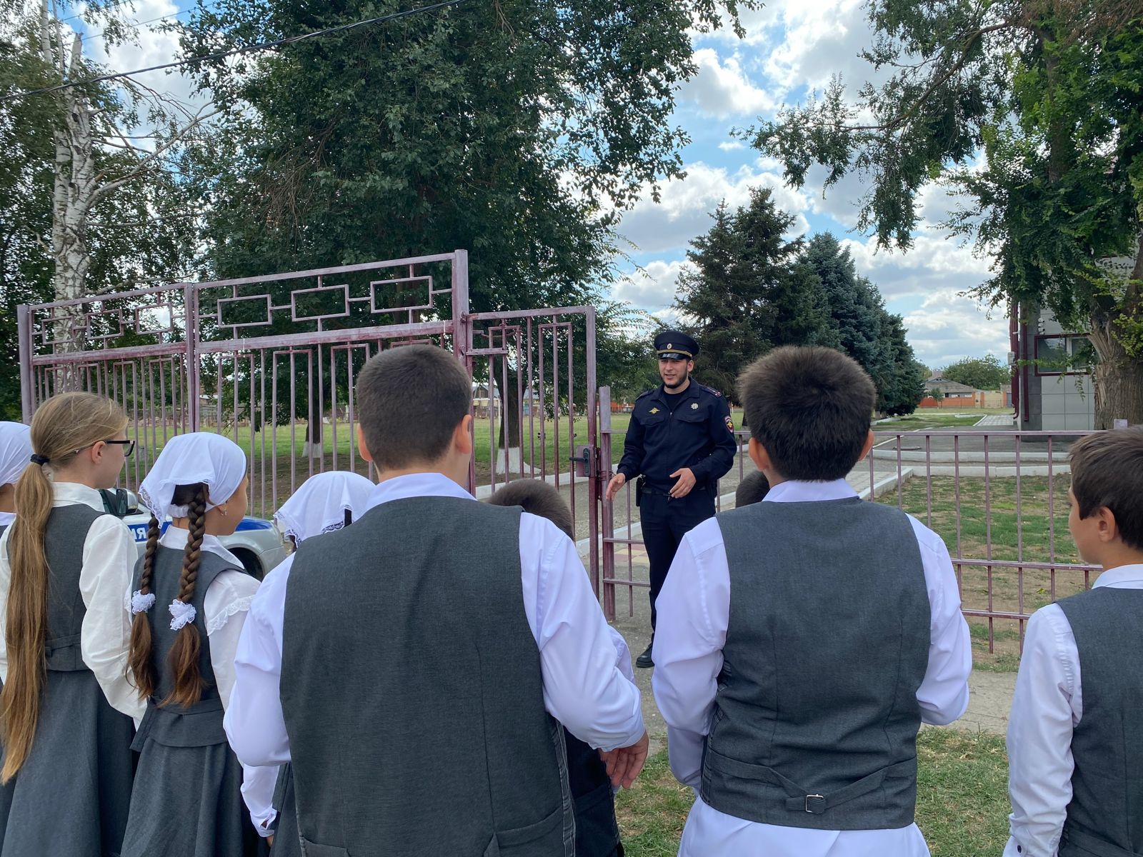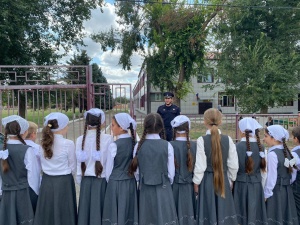 Мероприятия провел участковый уполномоченный полиции ОМВД России **Мутиев Малик Алибулатович**. Он не только рассказал детям о правилах дорожного движения, но и на практике показал, как правильно и безопасно следовать по ежедневному маршруту.